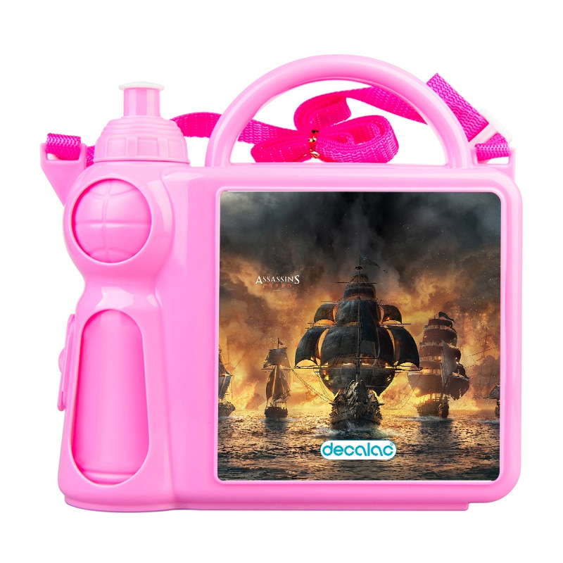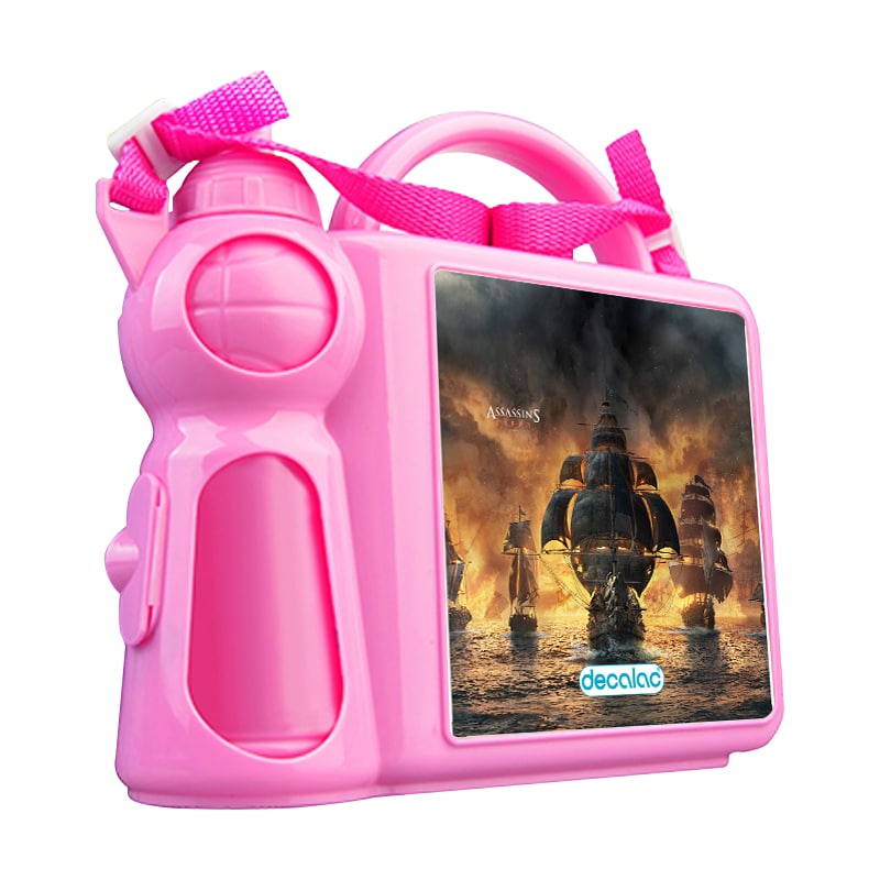 حافظة طعام بتصميم أساسنز كريد بلاك فلاغ من ديكالك، حافظة طعام وماء مناسبة لحفظ الطعام والفواكة طازجة، والماء في المكان المخصص له. محكمة الإغلاق، مصنوعة من البلاستيك. وقد تمت معالجتها لنضمن لكم جودة المنتج وكذلك ثبات الألوان عند استخدامها اليومي بحيث لا تتلاشى.