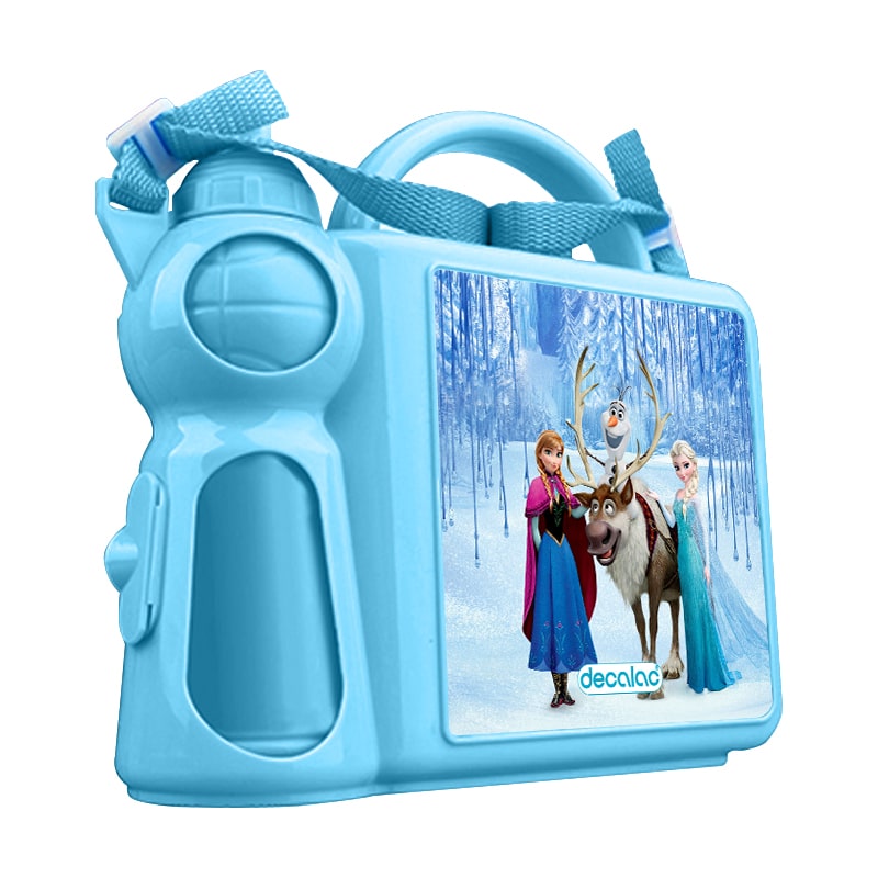 حافظة طعام بتصميم ابطال فروزن من ديكالك، حافظة طعام وماء مناسبة لحفظ الطعام والفواكة طازجة، والماء في المكان المخصص له. محكمة الإغلاق، مصنوعة من البلاستيك. وقد تمت معالجتها لنضمن لكم جودة المنتج وكذلك ثبات الألوان عند استخدامها اليومي بحيث لا تتلاشى.