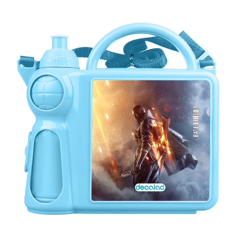 حافظة طعام بتصميم اسلحة باتلفيلد من ديكالك، حافظة طعام وماء مناسبة لحفظ الطعام والفواكة طازجة، والماء في المكان المخصص له. محكمة الإغلاق، مصنوعة من البلاستيك. وقد تمت معالجتها لنضمن لكم جودة المنتج وكذلك ثبات الألوان عند استخدامها اليومي بحيث لا تتلاشى.