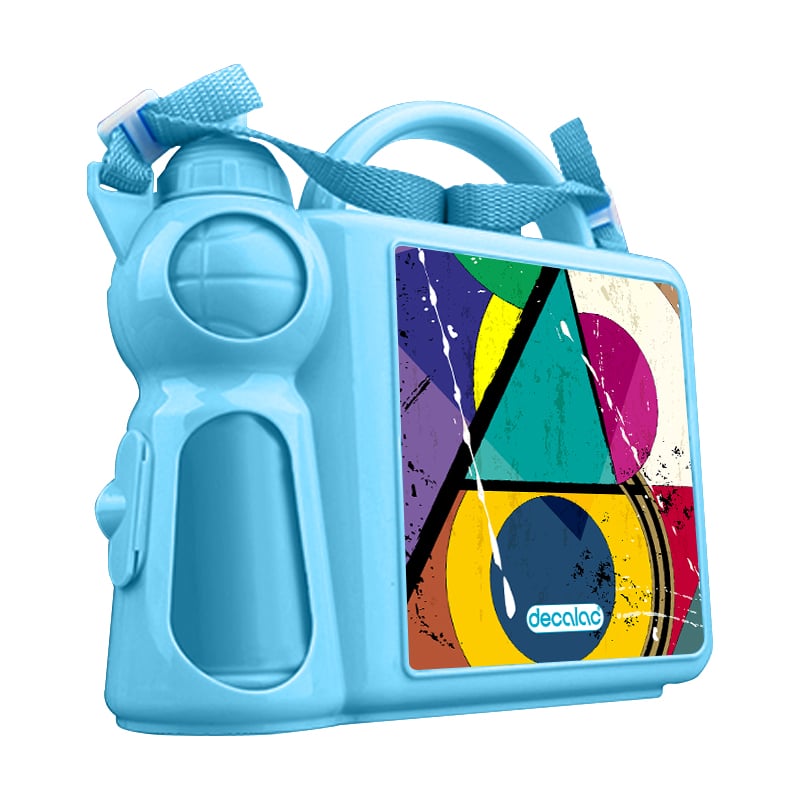 حافظة طعام بتصميم اشكال هندسيه من ديكالك، حافظة طعام وماء مناسبة لحفظ الطعام والفواكة طازجة، والماء في المكان المخصص له. محكمة الإغلاق، مصنوعة من البلاستيك. وقد تمت معالجتها لنضمن لكم جودة المنتج وكذلك ثبات الألوان عند استخدامها اليومي بحيث لا تتلاشى.