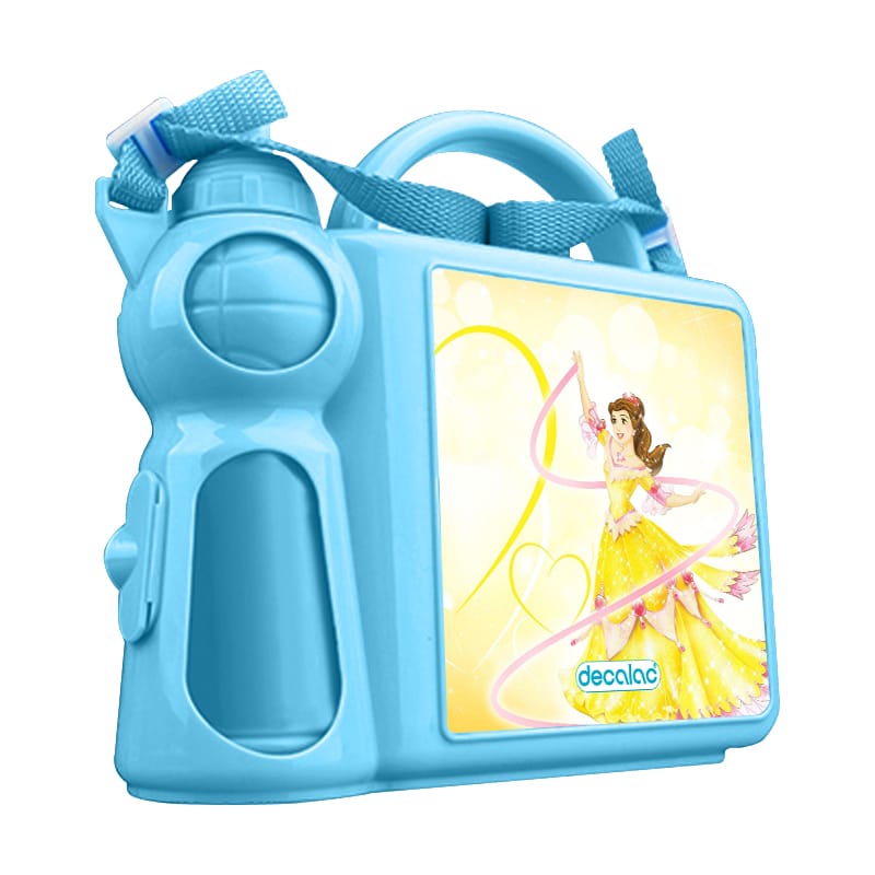 حافظة طعام بتصميم الاميرة بيلا فيلم الجميلة والوحش من ديكالك، حافظة طعام وماء مناسبة لحفظ الطعام والفواكة طازجة، والماء في المكان المخصص له. محكمة الإغلاق، مصنوعة من البلاستيك. وقد تمت معالجتها لنضمن لكم جودة المنتج وكذلك ثبات الألوان عند استخدامها اليومي بحيث لا تتلاشى.