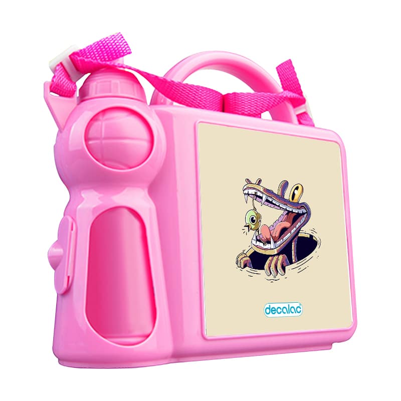 حافظة طعام بتصميم التمساح والصوص من ديكالك، حافظة طعام وماء مناسبة لحفظ الطعام والفواكة طازجة، والماء في المكان المخصص له. محكمة الإغلاق، مصنوعة من البلاستيك. وقد تمت معالجتها لنضمن لكم جودة المنتج وكذلك ثبات الألوان عند استخدامها اليومي بحيث لا تتلاشى.