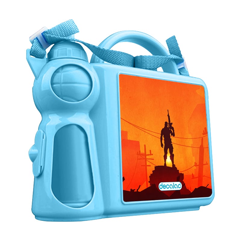حافظة طعام بتصميم المحارب فورت نايت من ديكالك، حافظة طعام وماء مناسبة لحفظ الطعام والفواكة طازجة، والماء في المكان المخصص له. محكمة الإغلاق، مصنوعة من البلاستيك. وقد تمت معالجتها لنضمن لكم جودة المنتج وكذلك ثبات الألوان عند استخدامها اليومي بحيث لا تتلاشى.