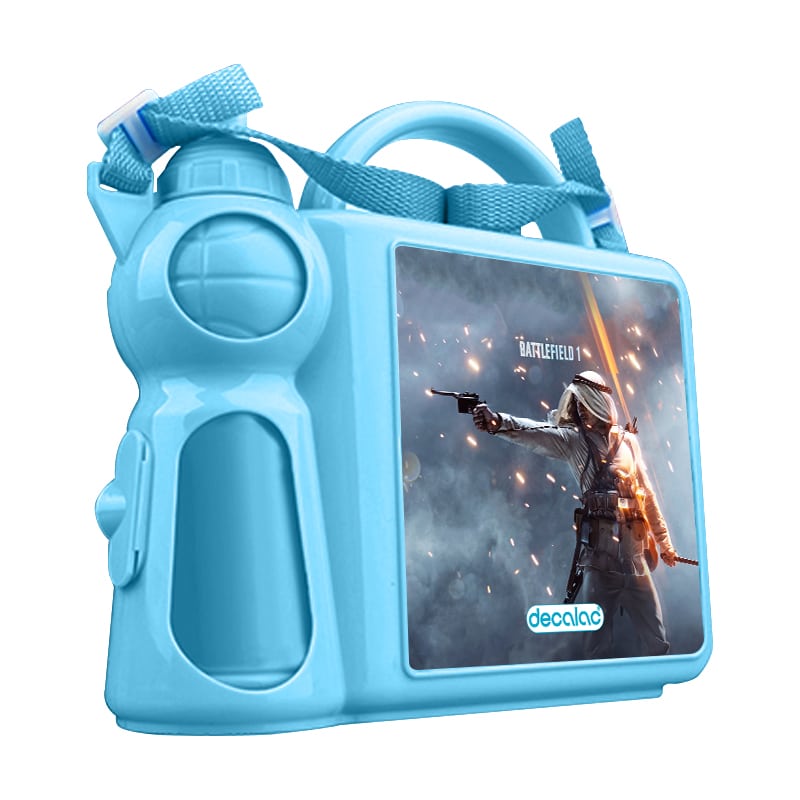حافظة طعام بتصميم باتلفيلد 1 معركه العرب من ديكالك، حافظة طعام وماء مناسبة لحفظ الطعام والفواكة طازجة، والماء في المكان المخصص له. محكمة الإغلاق، مصنوعة من البلاستيك. وقد تمت معالجتها لنضمن لكم جودة المنتج وكذلك ثبات الألوان عند استخدامها اليومي بحيث لا تتلاشى.