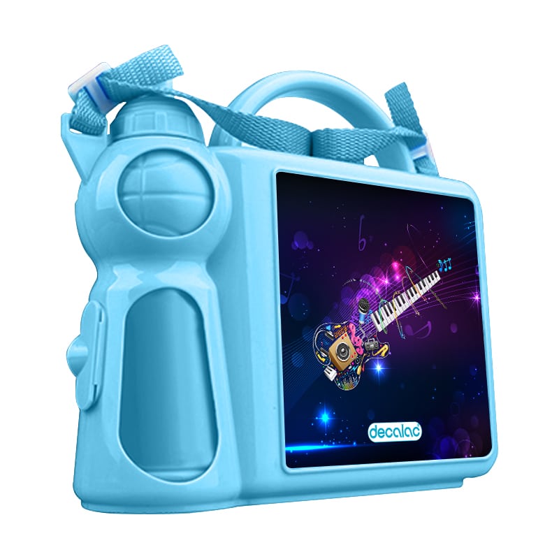 حافظة طعام بتصميم جيتار ومفاتيح بيانو من ديكالك، حافظة طعام وماء مناسبة لحفظ الطعام والفواكة طازجة، والماء في المكان المخصص له. محكمة الإغلاق، مصنوعة من البلاستيك. وقد تمت معالجتها لنضمن لكم جودة المنتج وكذلك ثبات الألوان عند استخدامها اليومي بحيث لا تتلاشى.