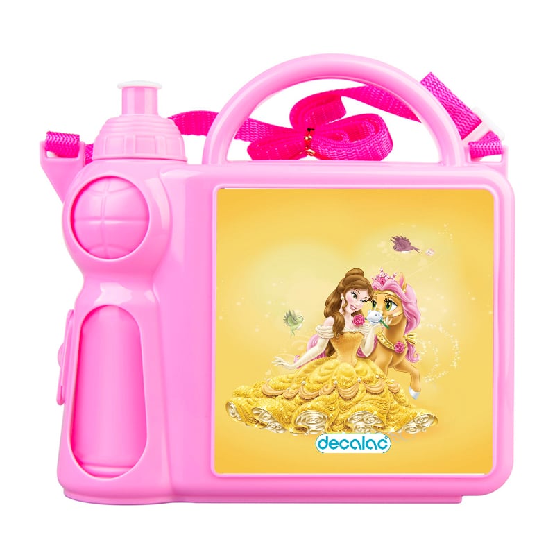 حافظة طعام بتصميم حصان الاميرة بيلا من ديكالك، حافظة طعام وماء مناسبة لحفظ الطعام والفواكة طازجة، والماء في المكان المخصص له. محكمة الإغلاق، مصنوعة من البلاستيك. وقد تمت معالجتها لنضمن لكم جودة المنتج وكذلك ثبات الألوان عند استخدامها اليومي بحيث لا تتلاشى.