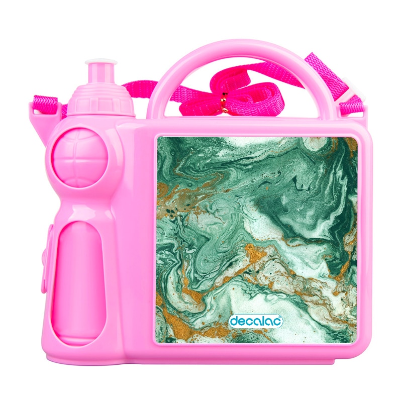 حافظة طعام بتصميم ذهبي وأخضر من ديكالك، حافظة طعام وماء مناسبة لحفظ الطعام والفواكة طازجة، والماء في المكان المخصص له. محكمة الإغلاق، مصنوعة من البلاستيك. وقد تمت معالجتها لنضمن لكم جودة المنتج وكذلك ثبات الألوان عند استخدامها اليومي بحيث لا تتلاشى.