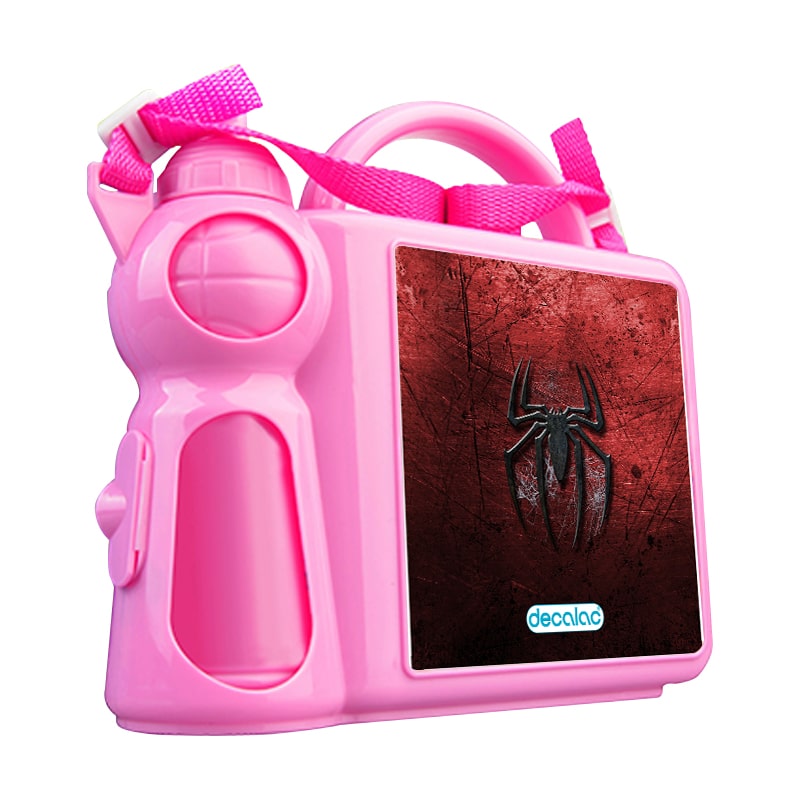 حافظة طعام بتصميم شعار سبايدرمان من ديكالك، حافظة طعام وماء مناسبة لحفظ الطعام والفواكة طازجة، والماء في المكان المخصص له. محكمة الإغلاق، مصنوعة من البلاستيك. وقد تمت معالجتها لنضمن لكم جودة المنتج وكذلك ثبات الألوان عند استخدامها اليومي بحيث لا تتلاشى.