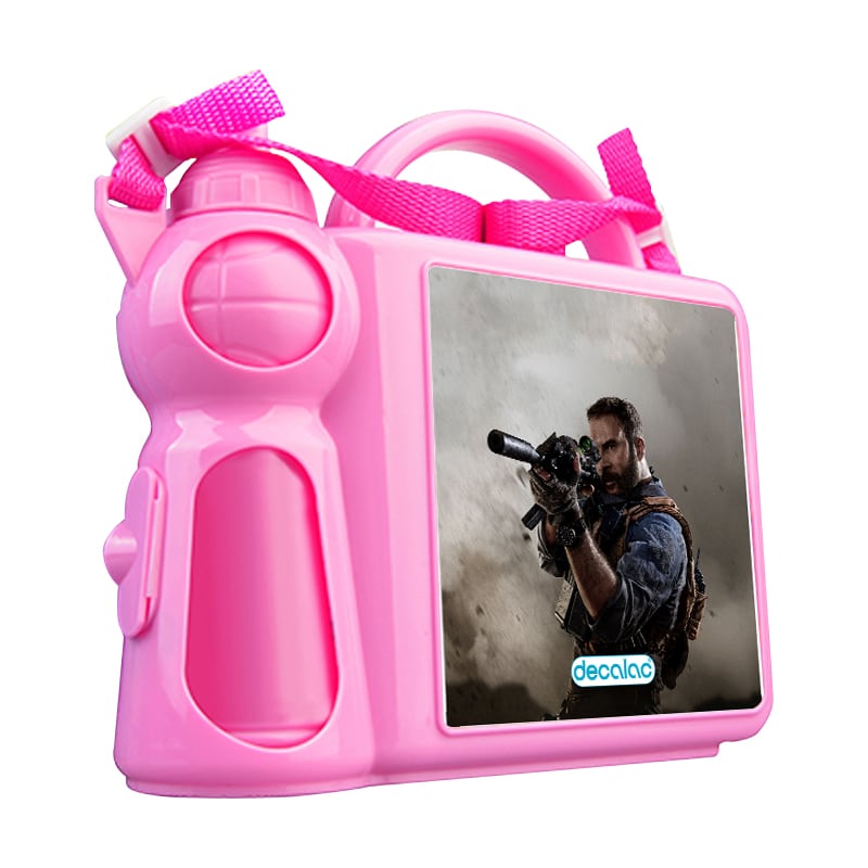 حافظة طعام بتصميم كول أوف ديوتي قناص من ديكالك، حافظة طعام وماء مناسبة لحفظ الطعام والفواكة طازجة، والماء في المكان المخصص له. محكمة الإغلاق، مصنوعة من البلاستيك. وقد تمت معالجتها لنضمن لكم جودة المنتج وكذلك ثبات الألوان عند استخدامها اليومي بحيث لا تتلاشى.
