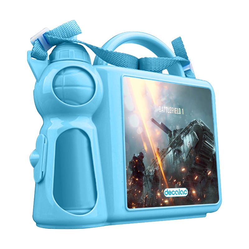حافظة طعام بتصميم مركبة قتالية باتلفيلد من ديكالك، حافظة طعام وماء مناسبة لحفظ الطعام والفواكة طازجة، والماء في المكان المخصص له. محكمة الإغلاق، مصنوعة من البلاستيك. وقد تمت معالجتها لنضمن لكم جودة المنتج وكذلك ثبات الألوان عند استخدامها اليومي بحيث لا تتلاشى.