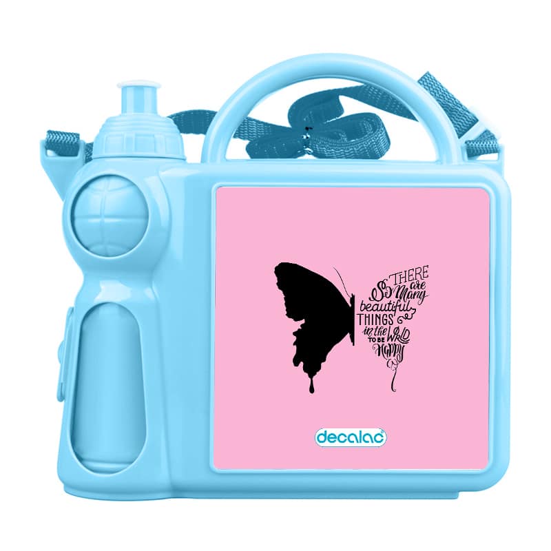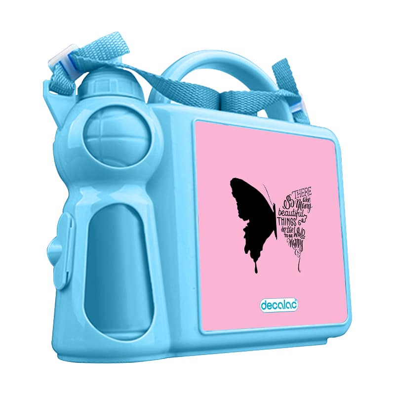 حافظة طعام بتصميم نصف فراشة من ديكالك، حافظة طعام وماء مناسبة لحفظ الطعام والفواكة طازجة، والماء في المكان المخصص له. محكمة الإغلاق، مصنوعة من البلاستيك. وقد تمت معالجتها لنضمن لكم جودة المنتج وكذلك ثبات الألوان عند استخدامها اليومي بحيث لا تتلاشى.