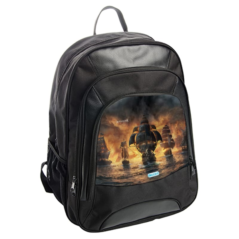 حقيبة ظهر جلدية بتصميم أساسنز كريد بلاك فلاغ من ديكالك، شنطة بتصاميم رائعة، تتميز هذه الحقيبة باحتوائها على عدة حجرات متعددة المقاسات. وهي مصنوعة من الجلد والبوليستر، ذات وزن خفيف، وظهر متين بأشرطة للحمل، كما يوجد بها جيب جانبي. وقد ثمت معالجتها لنضمن لكم جودة المنتج وكذلك ثبات الألوان عند استخدامها او غسيلها بحيث لا تتلاشى.