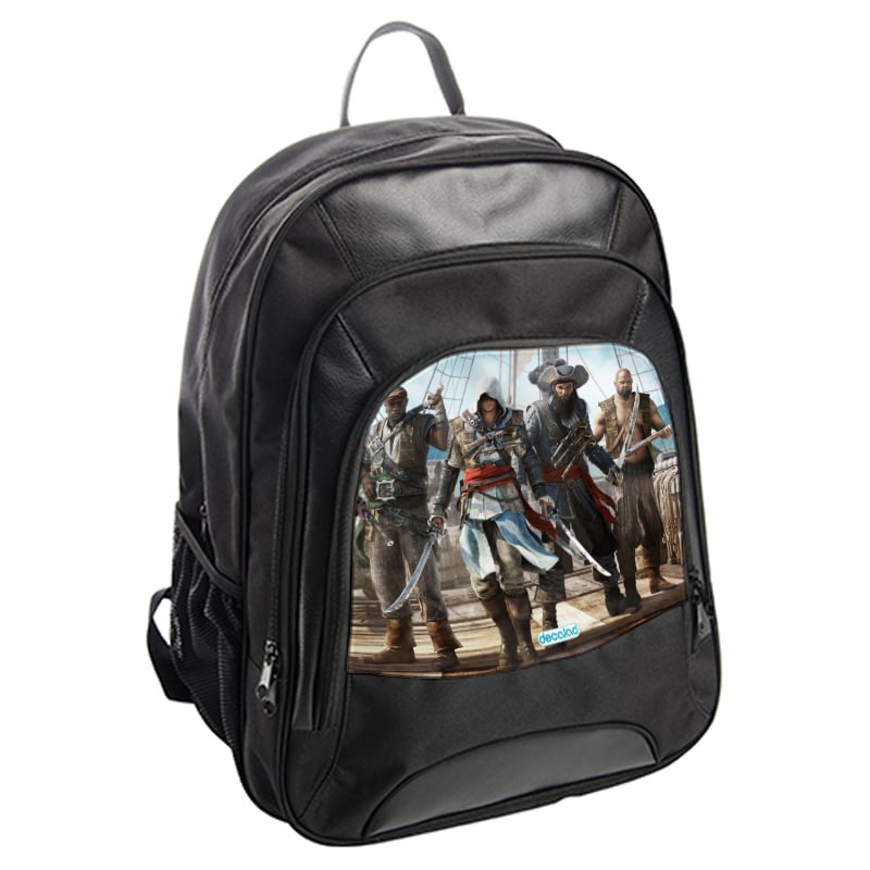 حقيبة ظهر جلدية بتصميم حرب بحريه أساسنز كريد من ديكالك، شنطة بتصاميم رائعة، تتميز هذه الحقيبة باحتوائها على عدة حجرات متعددة المقاسات. وهي مصنوعة من الجلد والبوليستر، ذات وزن خفيف، وظهر متين بأشرطة للحمل، كما يوجد بها جيب جانبي. وقد ثمت معالجتها لنضمن لكم جودة المنتج وكذلك ثبات الألوان عند استخدامها او غسيلها بحيث لا تتلاشى.