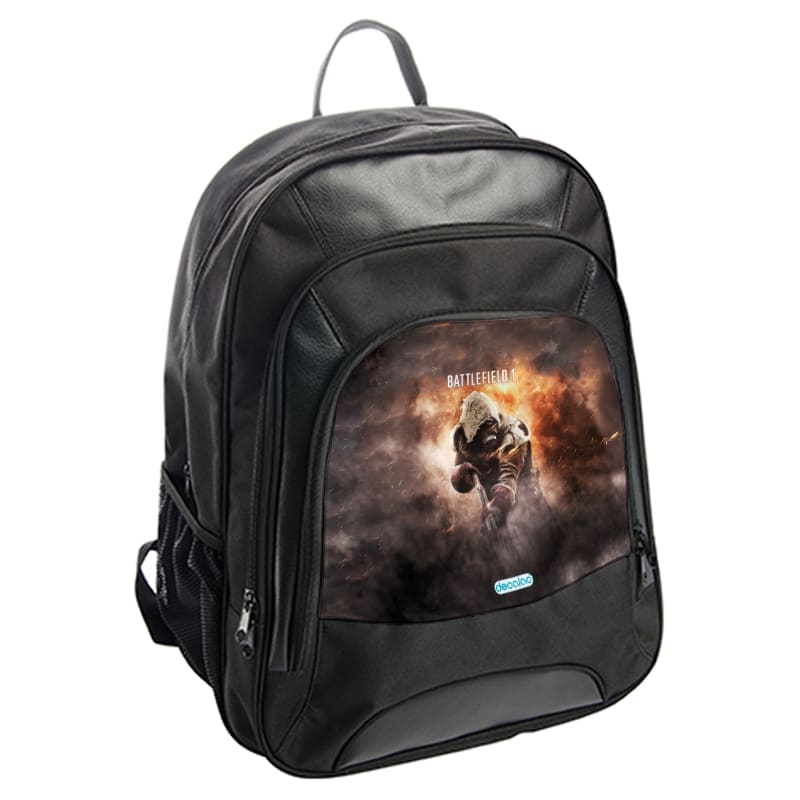 حقيبة ظهر جلدية بتصميم نداء الواجب باتلفيلد من ديكالك، شنطة بتصاميم رائعة، تتميز هذه الحقيبة باحتوائها على عدة حجرات متعددة المقاسات. وهي مصنوعة من الجلد والبوليستر، ذات وزن خفيف، وظهر متين بأشرطة للحمل، كما يوجد بها جيب جانبي. وقد ثمت معالجتها لنضمن لكم جودة المنتج وكذلك ثبات الألوان عند استخدامها او غسيلها بحيث لا تتلاشى.