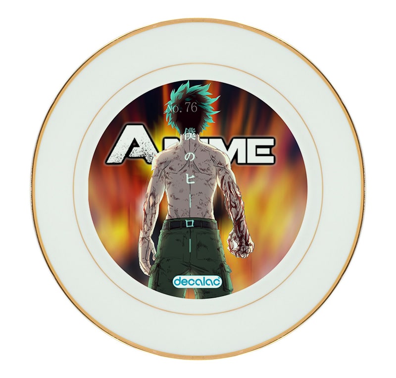 طبق زينة للطعام باطار داخلي ذهبي بتصميم قوة تحمل ميدوريا أكاديميتي للأبطال