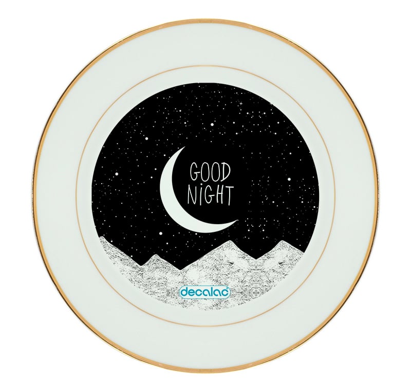 طبق زينة للطعام باطار داخلي ذهبي بتصميم ليله سعيده من ديكالك، طبق طعام بتصاميم جميلة تعبر تميزك و أسلوبك الخاص. وقد تمت معالجتها لنضمن لكم جودة المنتج وكذلك ثبات الألوان عند استخدامها اليومي بحيث لا تتلاشى.