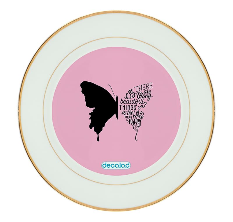 طبق زينة للطعام باطار داخلي ذهبي بتصميم نصف فراشة من ديكالك، طبق طعام بتصاميم جميلة تعبر تميزك و أسلوبك الخاص. وقد تمت معالجتها لنضمن لكم جودة المنتج وكذلك ثبات الألوان عند استخدامها اليومي بحيث لا تتلاشى.