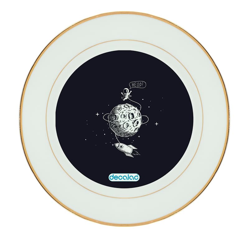 طبق زينة للطعام باطار داخلي ذهبي بتصميم رائد فضاء من ديكالك، طبق طعام بتصاميم جميلة تعبر تميزك و أسلوبك الخاص. وقد تمت معالجتها لنضمن لكم جودة المنتج وكذلك ثبات الألوان عند استخدامها اليومي بحيث لا تتلاشى.
