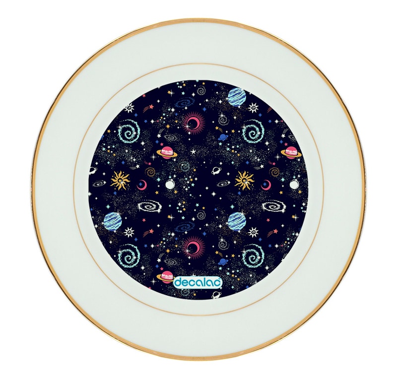 طبق زينة للطعام باطار داخلي ذهبي بتصميم الفضاء والمجرة من ديكالك، طبق طعام بتصاميم جميلة تعبر تميزك و أسلوبك الخاص. وقد تمت معالجتها لنضمن لكم جودة المنتج وكذلك ثبات الألوان عند استخدامها اليومي بحيث لا تتلاشى.