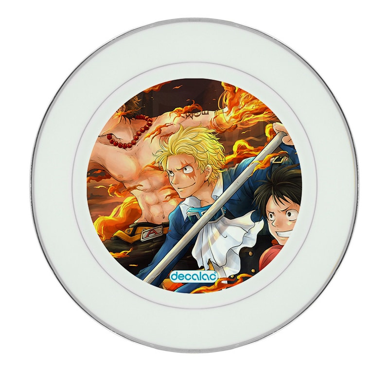 طبق زينة للطعام باطار داخلي فضي بتصميم قوة الثلاثة أشقاء ون بيس من ديكالك، طبق طعام بتصاميم جميلة تعبر تميزك و أسلوبك الخاص. وقد تمت معالجتها لنضمن لكم جودة المنتج وكذلك ثبات الألوان عند استخدامها اليومي بحيث لا تتلاشى.