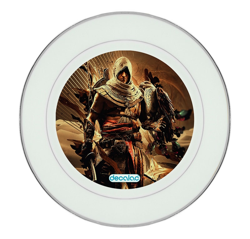 طبق زينة للطعام باطار داخلي فضي بتصميم الطائرمع الصقر أساسنز كريد من ديكالك، طبق طعام بتصاميم جميلة تعبر تميزك و أسلوبك الخاص. وقد تمت معالجتها لنضمن لكم جودة المنتج وكذلك ثبات الألوان عند استخدامها اليومي بحيث لا تتلاشى.