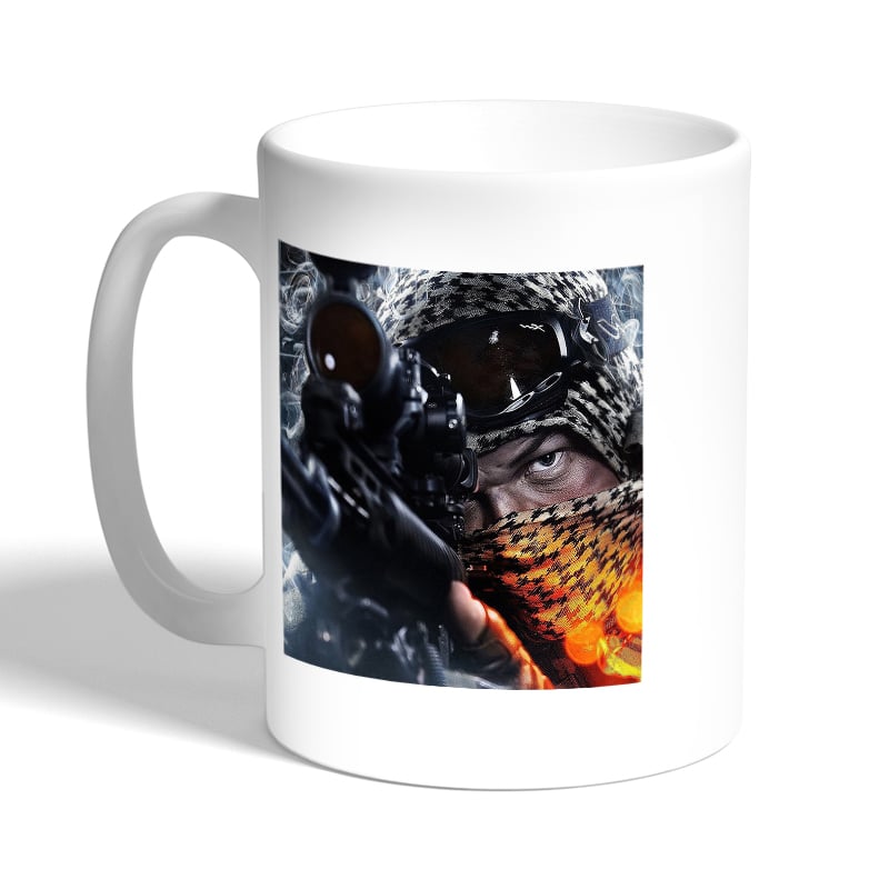 كوب قهوة بتصميم القناص باتلفيلد 1 مصنوع من السيراميك ذات الجودة العالية المزينة بتصاميم ورسوم ابداعية تعبّر عن تميزك واسلوبك الخاص، اذا كنت تبحث عن هدية مميزة، غير تقليدية لأحبائك وأصدقائك، أو أن تضيف لمسة جمالية الى كوب القهوة الصباحي، أنت إذن في المكان الصحيح.
