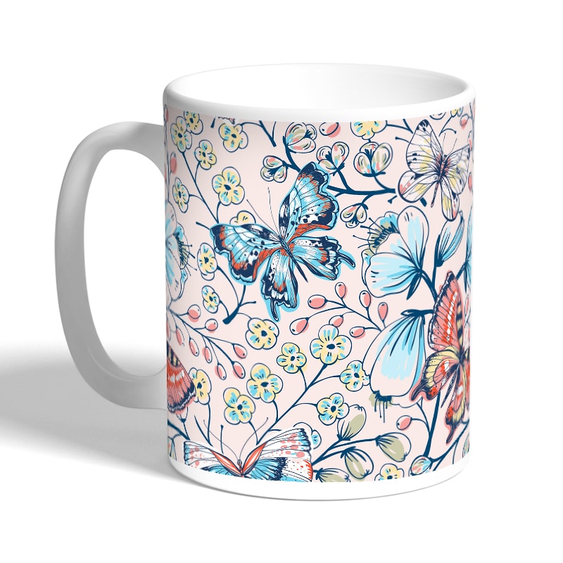 كوب قهوة بتصميم ورود وفراشات مصنوع من السيراميك ذات الجودة العالية المزينة بتصاميم ورسوم ابداعية تعبّر عن تميزك واسلوبك الخاص، اذا كنت تبحث عن هدية مميزة، غير تقليدية لأحبائك وأصدقائك، أو أن تضيف لمسة جمالية الى كوب القهوة الصباحي، أنت إذن في المكان الصحيح.