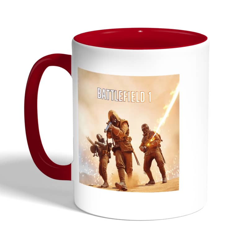 كوب قهوة بمقبض احمر بتصميم اطلاق النار باتلفيلد مصنوع من السيراميك ذات الجودة العالية المزينة بتصاميم ورسوم ابداعية تعبّر عن تميزك واسلوبك الخاص، اذا كنت تبحث عن هدية مميزة، غير تقليدية لأحبائك وأصدقائك، أو أن تضيف لمسة جمالية الى كوب القهوة الصباحي، أنت إذن في المكان الصحيح.