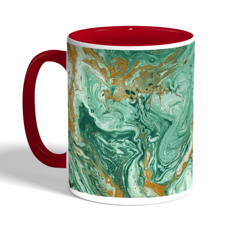 كوب قهوة بمقبض احمر بتصميم ذهبي وأخضر مصنوع من السيراميك ذات الجودة العالية المزينة بتصاميم ورسوم ابداعية تعبّر عن تميزك واسلوبك الخاص، اذا كنت تبحث عن هدية مميزة، غير تقليدية لأحبائك وأصدقائك، أو أن تضيف لمسة جمالية الى كوب القهوة الصباحي، أنت إذن في المكان الصحيح.