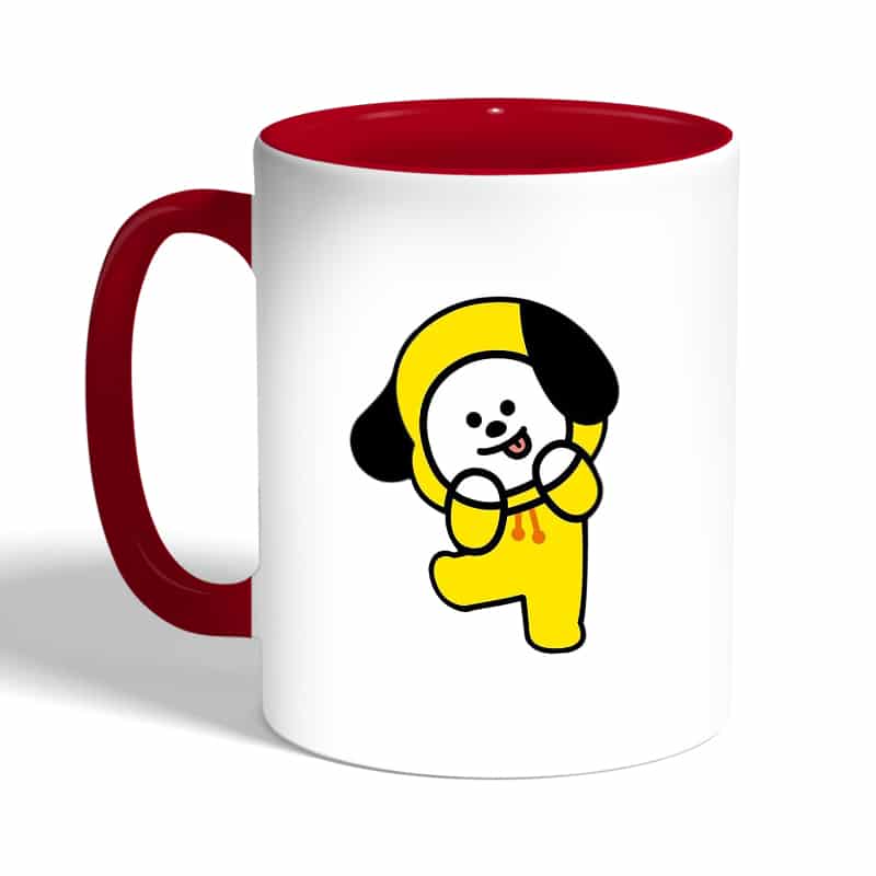 كوب قهوة بمقبض احمر بتصميم شخصيه شيمي BT21