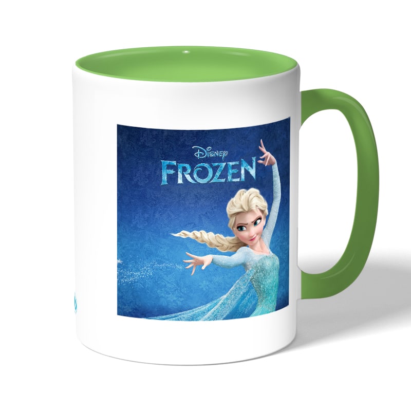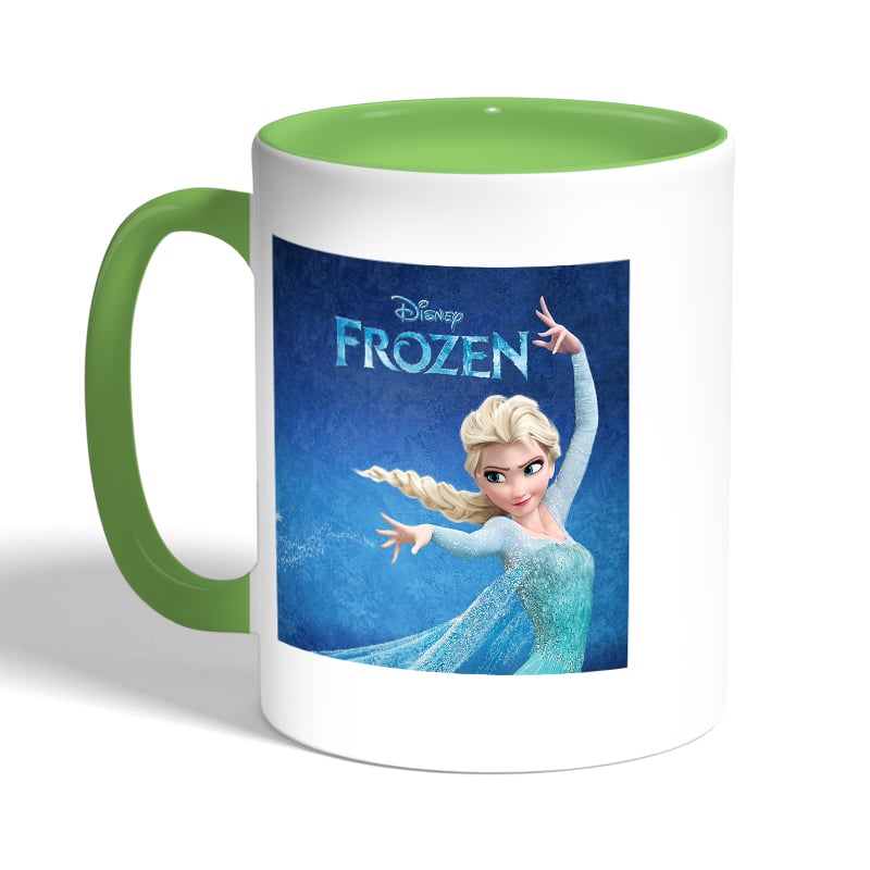 كوب قهوة بمقبض اخضر بتصميم إلسا ملكة آريندل فروزن
