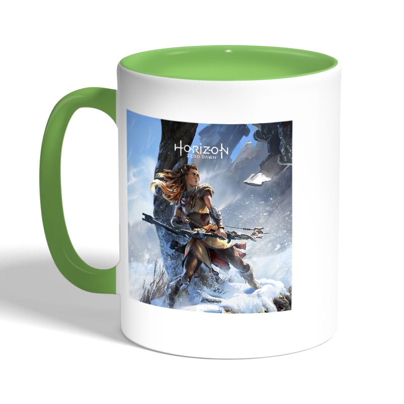كوب قهوة بمقبض اخضر بتصميم إلوي هوريزن زيرو دون مصنوع من السيراميك ذات الجودة العالية المزينة بتصاميم ورسوم ابداعية تعبّر عن تميزك واسلوبك الخاص، اذا كنت تبحث عن هدية مميزة، غير تقليدية لأحبائك وأصدقائك، أو أن تضيف لمسة جمالية الى كوب القهوة الصباحي، أنت إذن في المكان الصحيح.