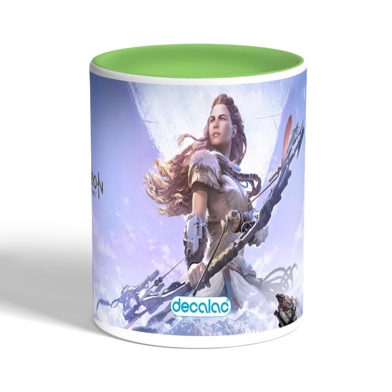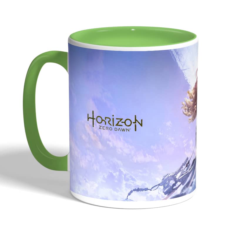 كوب قهوة بمقبض اخضر بتصميم الصيّادة إلوي هورايزن زيرو داون مصنوع من السيراميك ذات الجودة العالية المزينة بتصاميم ورسوم ابداعية تعبّر عن تميزك واسلوبك الخاص، اذا كنت تبحث عن هدية مميزة، غير تقليدية لأحبائك وأصدقائك، أو أن تضيف لمسة جمالية الى كوب القهوة الصباحي، أنت إذن في المكان الصحيح.