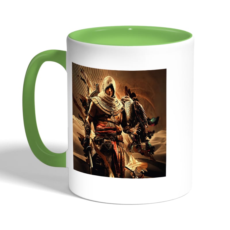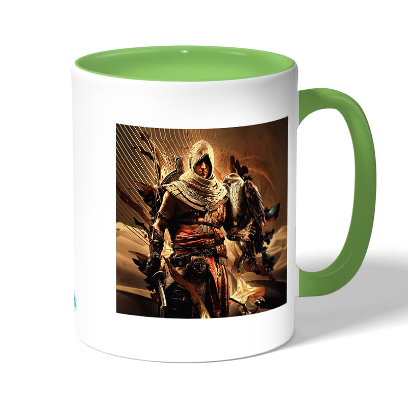 كوب قهوة بمقبض اخضر بتصميم الطائرمع الصقر أساسنز كريد