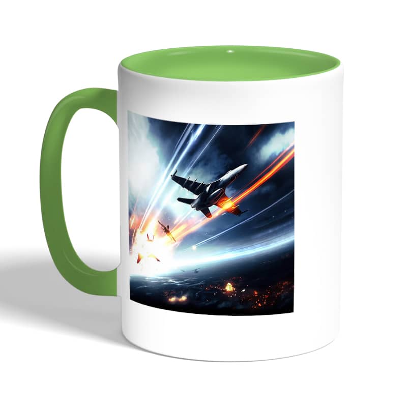 كوب قهوة بمقبض اخضر بتصميم طائرات حربيه باتلفيلد