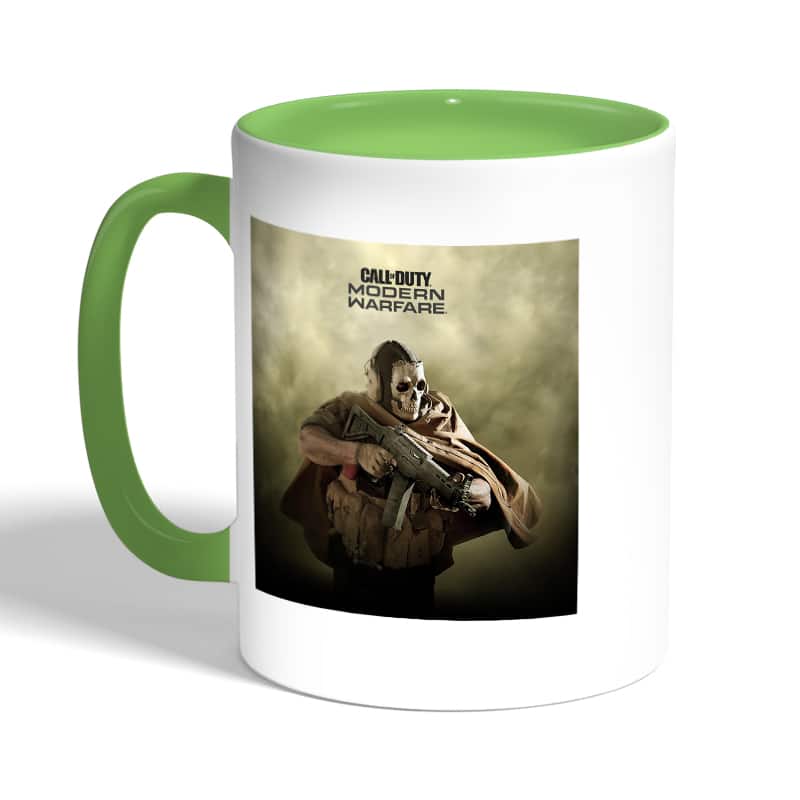 كوب قهوة بمقبض اخضر بتصميم كول أوف ديوتي مصنوع من السيراميك ذات الجودة العالية المزينة بتصاميم ورسوم ابداعية تعبّر عن تميزك واسلوبك الخاص، اذا كنت تبحث عن هدية مميزة، غير تقليدية لأحبائك وأصدقائك، أو أن تضيف لمسة جمالية الى كوب القهوة الصباحي، أنت إذن في المكان الصحيح.