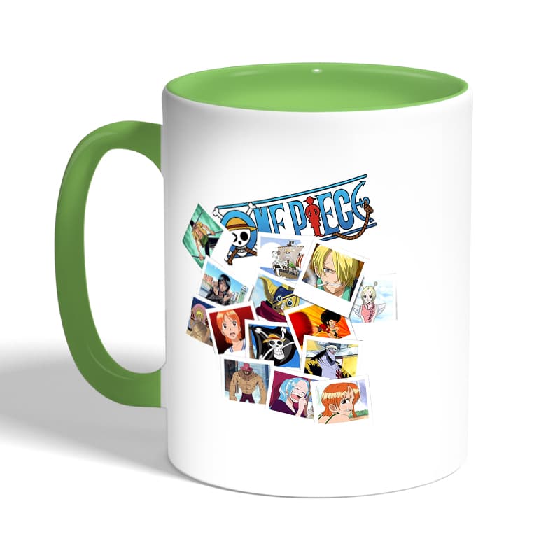 كوب قهوة بمقبض اخضر بتصميم لحظات مهمه ون بيس مصنوع من السيراميك ذات الجودة العالية المزينة بتصاميم ورسوم ابداعية تعبّر عن تميزك واسلوبك الخاص، اذا كنت تبحث عن هدية مميزة، غير تقليدية لأحبائك وأصدقائك، أو أن تضيف لمسة جمالية الى كوب القهوة الصباحي، أنت إذن في المكان الصحيح.