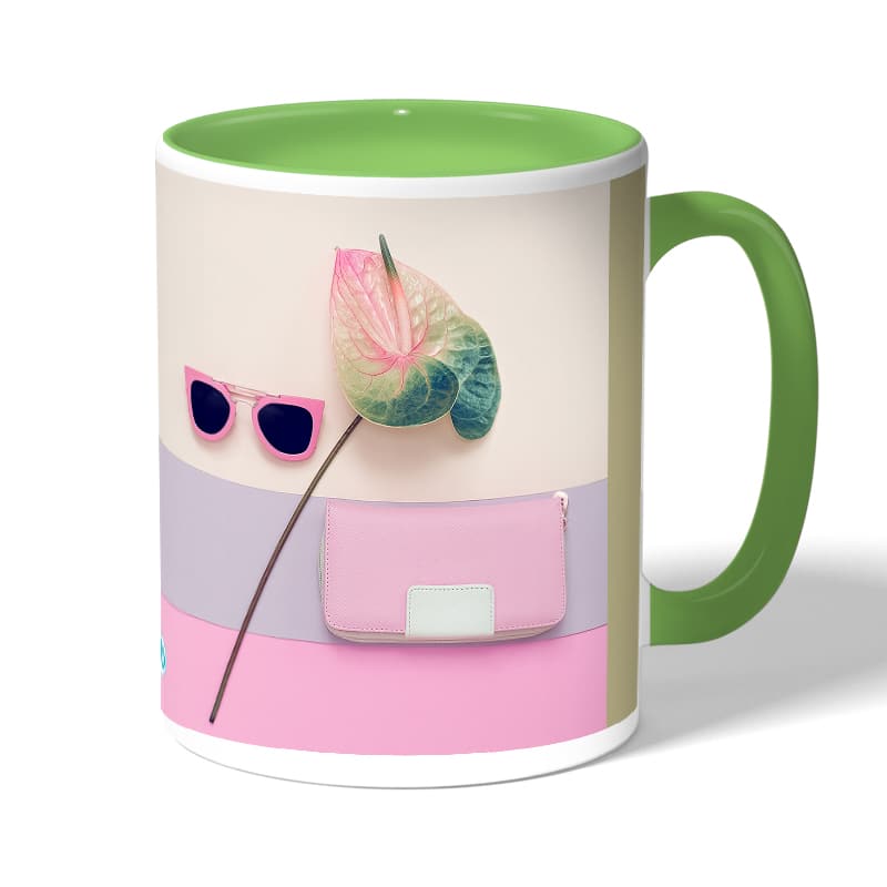 كوب قهوة بمقبض اخضر بتصميم ورد مميز