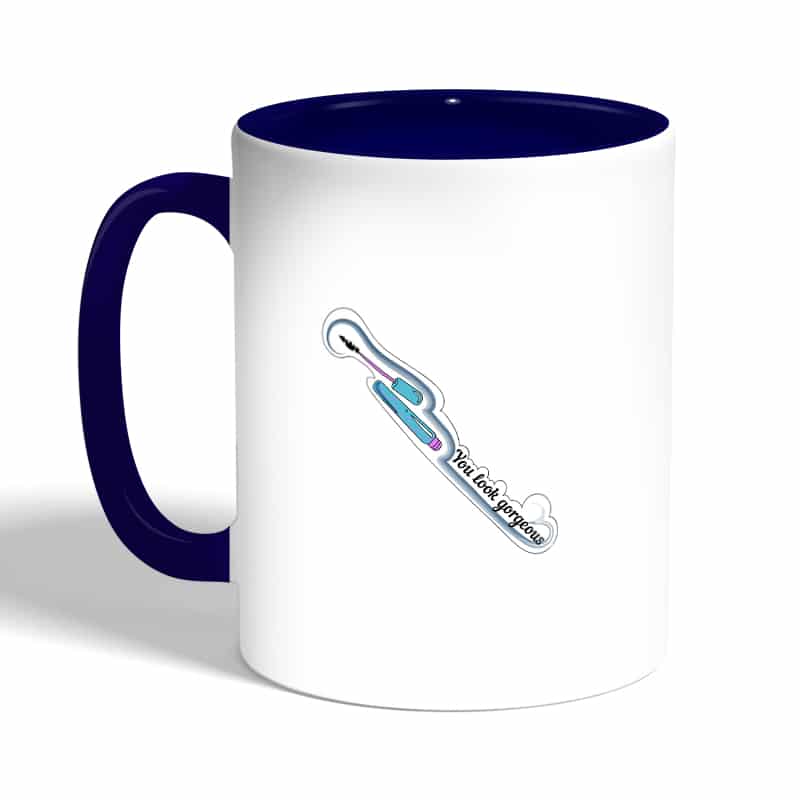 كوب قهوة بمقبض ازرق داكن بتصميم أنت تبدو رائعة