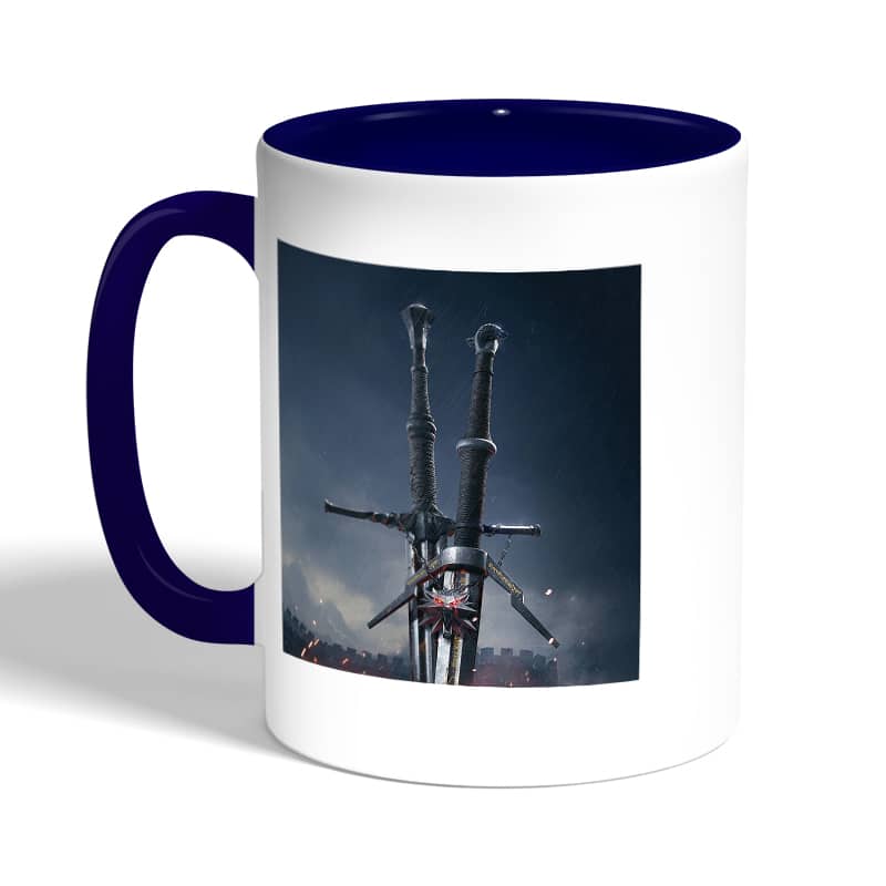 كوب قهوة بمقبض ازرق داكن بتصميم سيف فضي أفعواني من ذا ويتشر 3 وايلد هانت مصنوع من السيراميك ذات الجودة العالية المزينة بتصاميم ورسوم ابداعية تعبّر عن تميزك واسلوبك الخاص، اذا كنت تبحث عن هدية مميزة، غير تقليدية لأحبائك وأصدقائك، أو أن تضيف لمسة جمالية الى كوب القهوة الصباحي، أنت إذن في المكان الصحيح.