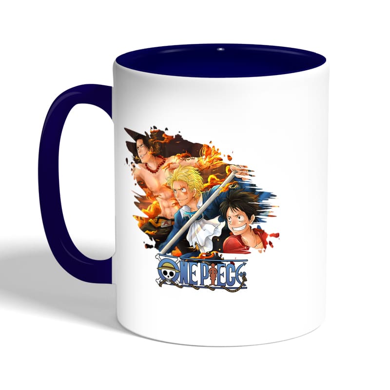 كوب قهوة بمقبض ازرق داكن بتصميم قوة الثلاثة أشقاء ون بيس مصنوع من السيراميك ذات الجودة العالية المزينة بتصاميم ورسوم ابداعية تعبّر عن تميزك واسلوبك الخاص، اذا كنت تبحث عن هدية مميزة، غير تقليدية لأحبائك وأصدقائك، أو أن تضيف لمسة جمالية الى كوب القهوة الصباحي، أنت إذن في المكان الصحيح.