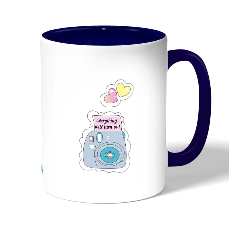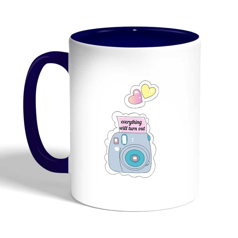 كوب قهوة بمقبض ازرق داكن بتصميم كرتون كاميرا