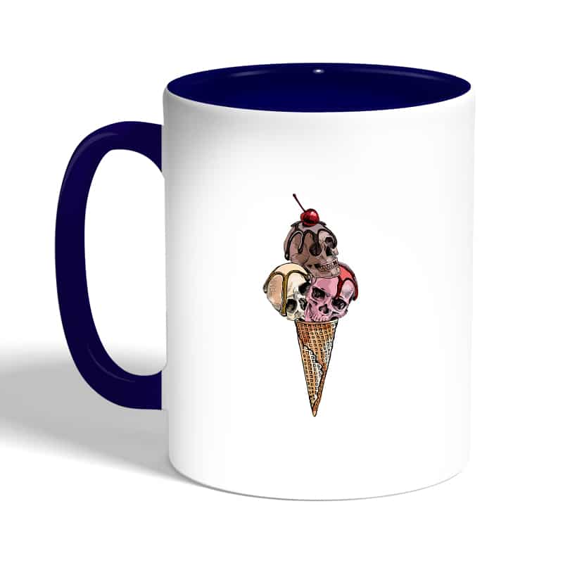 كوب قهوة بمقبض ازرق داكن بتصميم مثلجات الجماجم مصنوع من السيراميك ذات الجودة العالية المزينة بتصاميم ورسوم ابداعية تعبّر عن تميزك واسلوبك الخاص، اذا كنت تبحث عن هدية مميزة، غير تقليدية لأحبائك وأصدقائك، أو أن تضيف لمسة جمالية الى كوب القهوة الصباحي، أنت إذن في المكان الصحيح.