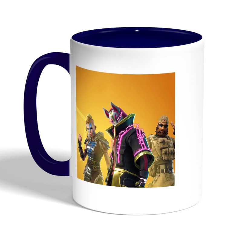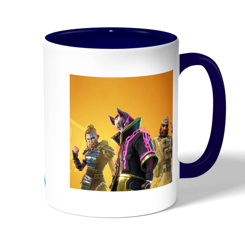 كوب قهوة بمقبض ازرق داكن بتصميم ناروتو انبو فورت نايت