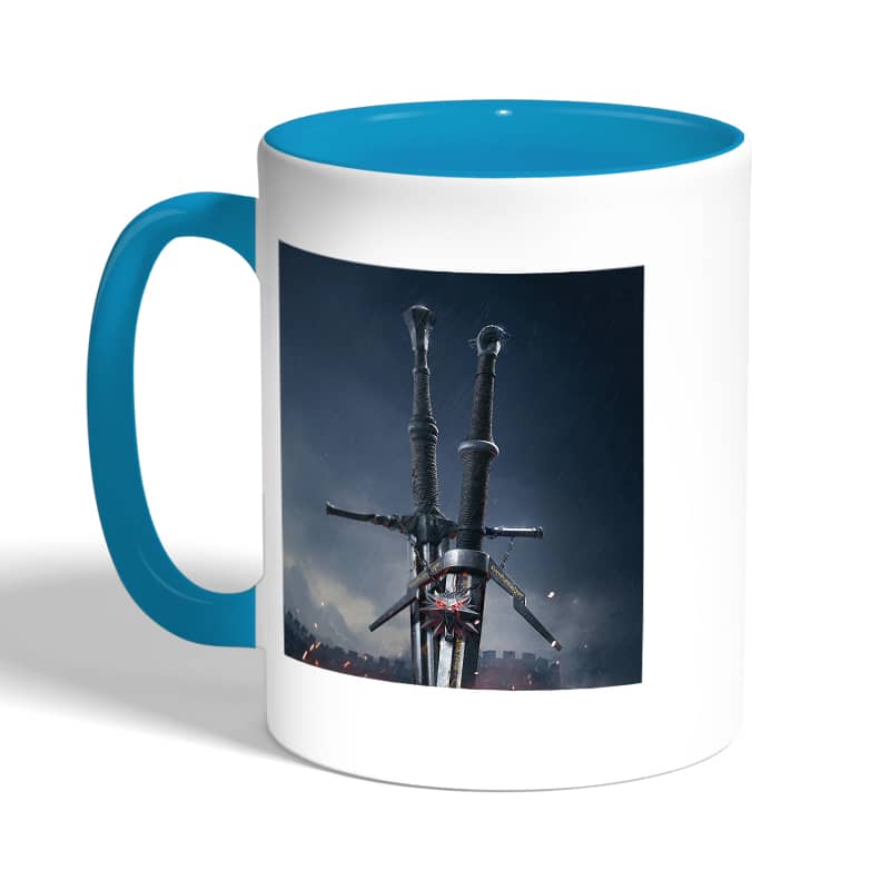 كوب قهوة بمقبض ازرق فاتح بتصميم سيف فضي أفعواني من ذا ويتشر 3 وايلد هانت مصنوع من السيراميك ذات الجودة العالية المزينة بتصاميم ورسوم ابداعية تعبّر عن تميزك واسلوبك الخاص، اذا كنت تبحث عن هدية مميزة، غير تقليدية لأحبائك وأصدقائك، أو أن تضيف لمسة جمالية الى كوب القهوة الصباحي، أنت إذن في المكان الصحيح.