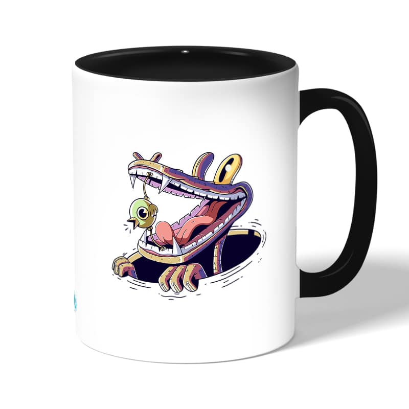 كوب قهوة بمقبض اسود بتصميم التمساح والصوص مصنوع من السيراميك ذات الجودة العالية المزينة بتصاميم ورسوم ابداعية تعبّر عن تميزك واسلوبك الخاص، اذا كنت تبحث عن هدية مميزة، غير تقليدية لأحبائك وأصدقائك، أو أن تضيف لمسة جمالية الى كوب القهوة الصباحي، أنت إذن في المكان الصحيح.