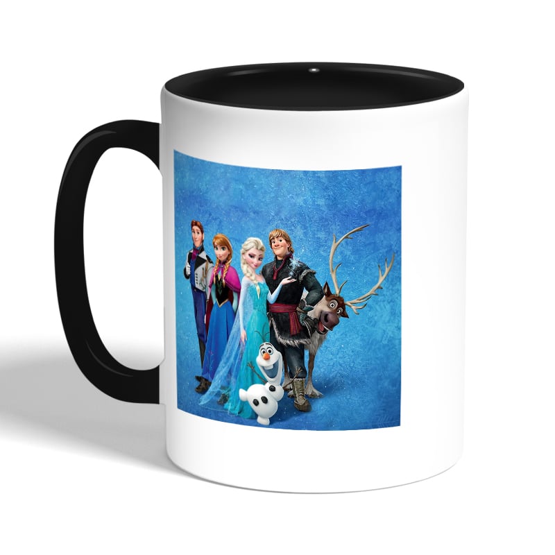 كوب قهوة بمقبض اسود بتصميم الشخصيات الرئيسيه لفروزن مصنوع من السيراميك ذات الجودة العالية المزينة بتصاميم ورسوم ابداعية تعبّر عن تميزك واسلوبك الخاص، اذا كنت تبحث عن هدية مميزة، غير تقليدية لأحبائك وأصدقائك، أو أن تضيف لمسة جمالية الى كوب القهوة الصباحي، أنت إذن في المكان الصحيح.