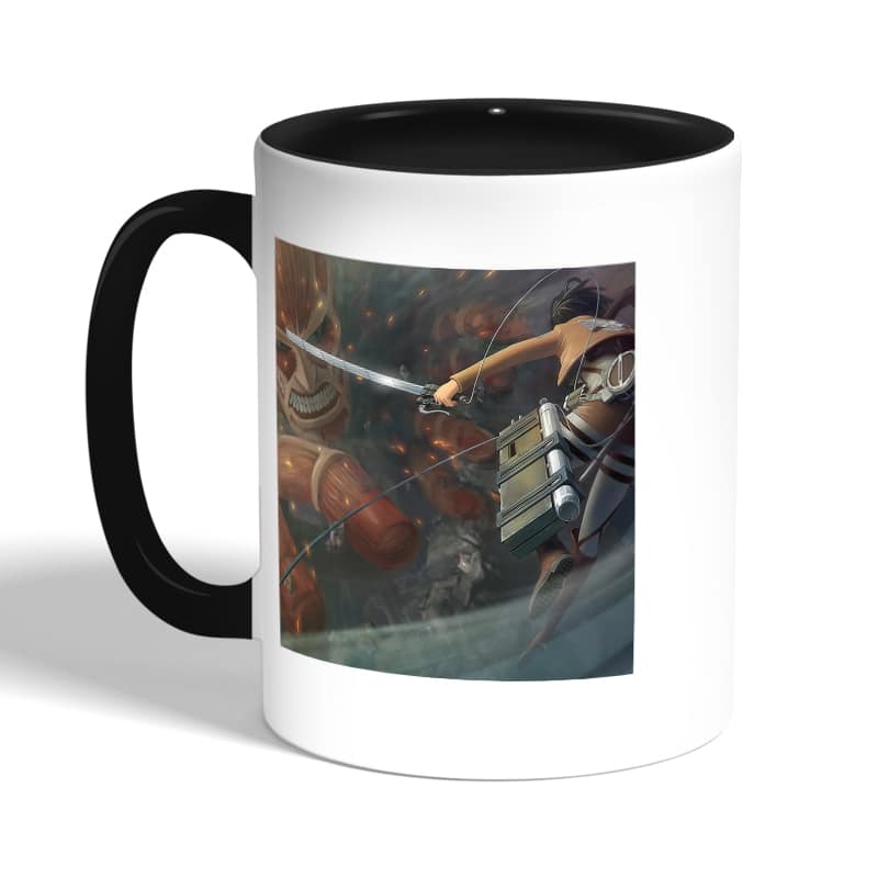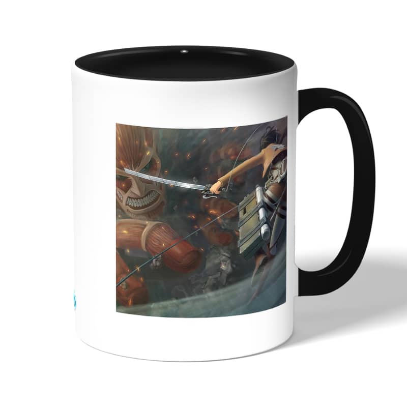 كوب قهوة بمقبض اسود بتصميم قتال مع العملاق الضخم هجوم العمالقة مصنوع من السيراميك ذات الجودة العالية المزينة بتصاميم ورسوم ابداعية تعبّر عن تميزك واسلوبك الخاص، اذا كنت تبحث عن هدية مميزة، غير تقليدية لأحبائك وأصدقائك، أو أن تضيف لمسة جمالية الى كوب القهوة الصباحي، أنت إذن في المكان الصحيح.