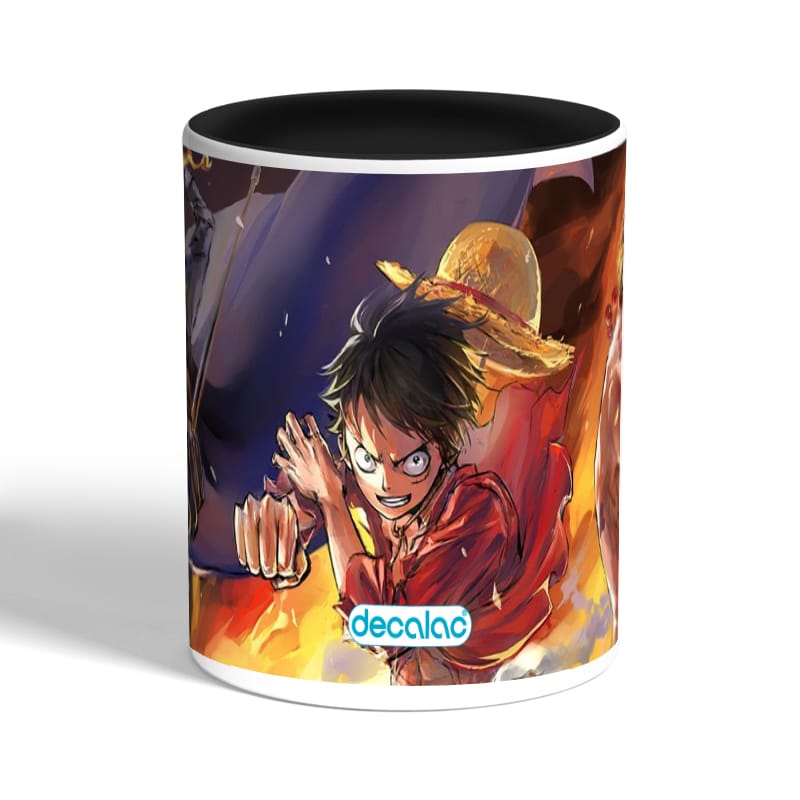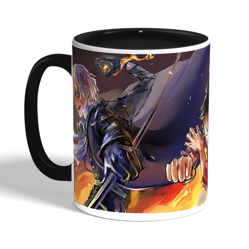 كوب قهوة بمقبض اسود بتصميم لوفي سابو إيس ون بيس
