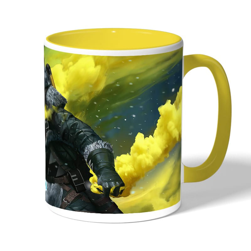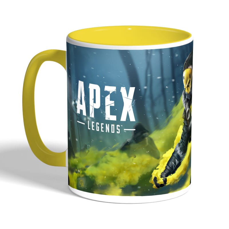 كوب قهوة بمقبض اصفر بتصميم أبيكس ليجندز كوستيك مصنوع من السيراميك ذات الجودة العالية المزينة بتصاميم ورسوم ابداعية تعبّر عن تميزك واسلوبك الخاص، اذا كنت تبحث عن هدية مميزة، غير تقليدية لأحبائك وأصدقائك، أو أن تضيف لمسة جمالية الى كوب القهوة الصباحي، أنت إذن في المكان الصحيح.